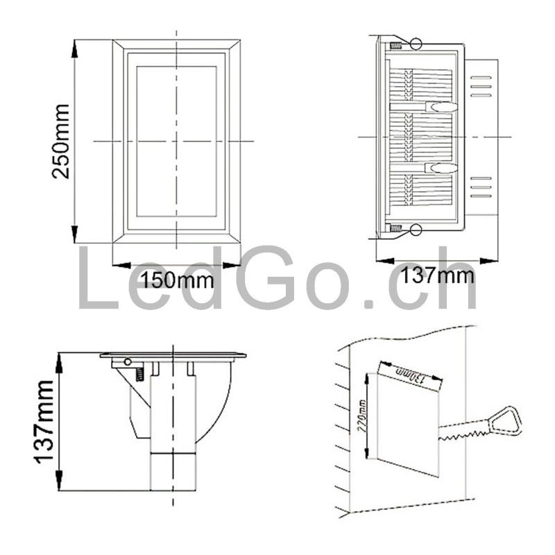 ![]() | Découpe pour encastrement: 220 x 130mm |