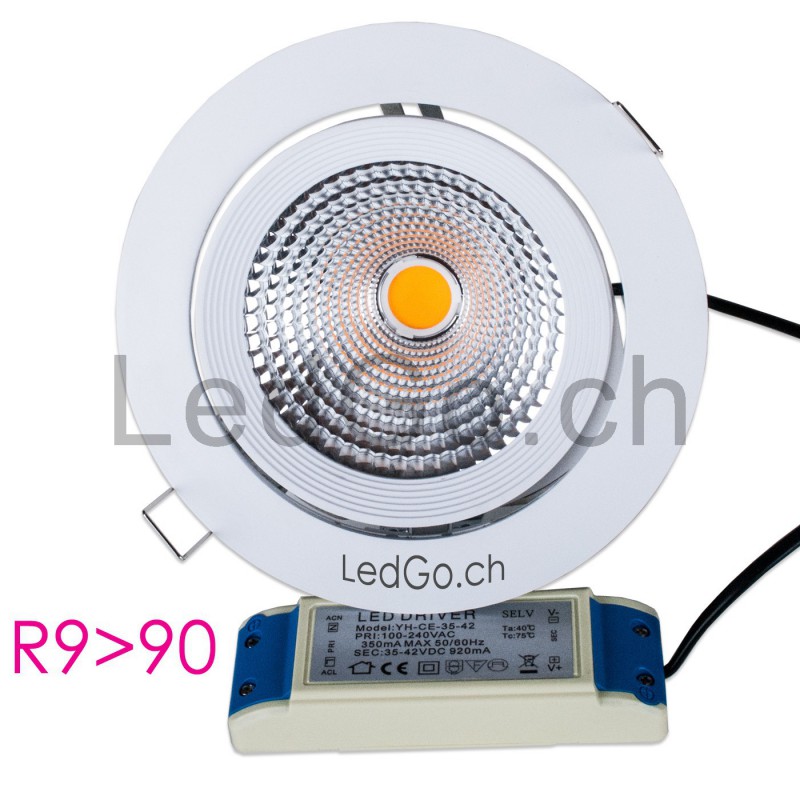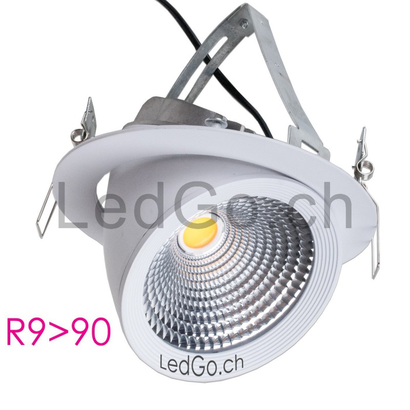 Ce spot encastrable 30W LED COB est orientable et conçu spécifiquement pour l'éclairage de la viande et charcuterie.